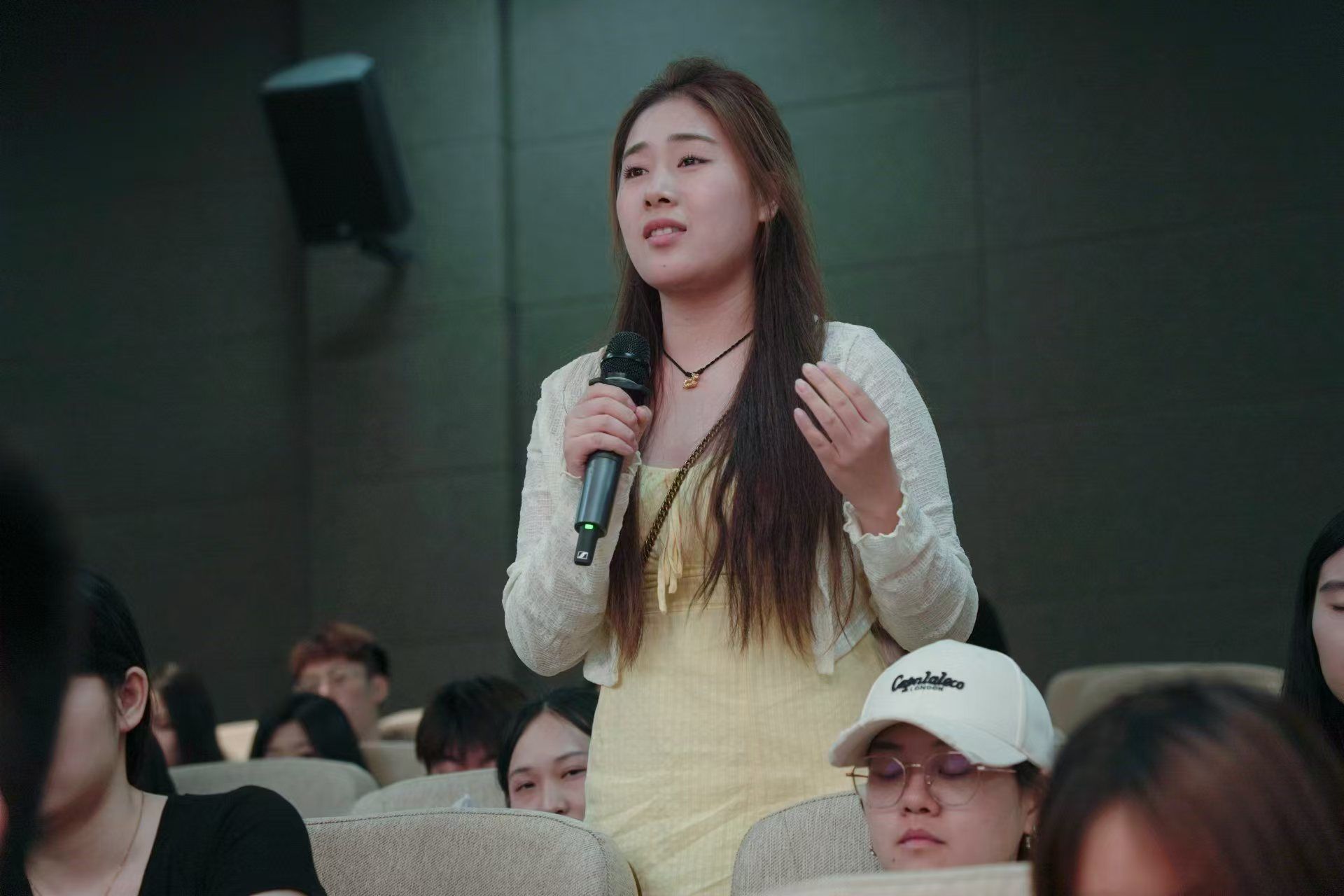 在会议的尾声,同学们积极踊跃地提问,渴望从学长学姐们的宝贵经验中汲取创作灵感,并对影片创作手法上的疑惑寻求解答。广播电视教研室主任曹洋洋老师对创作者们勇于走出舒适圈、挑战自我的努力给予了高度评价,并肯定了他们在创作道路上取得的成果。