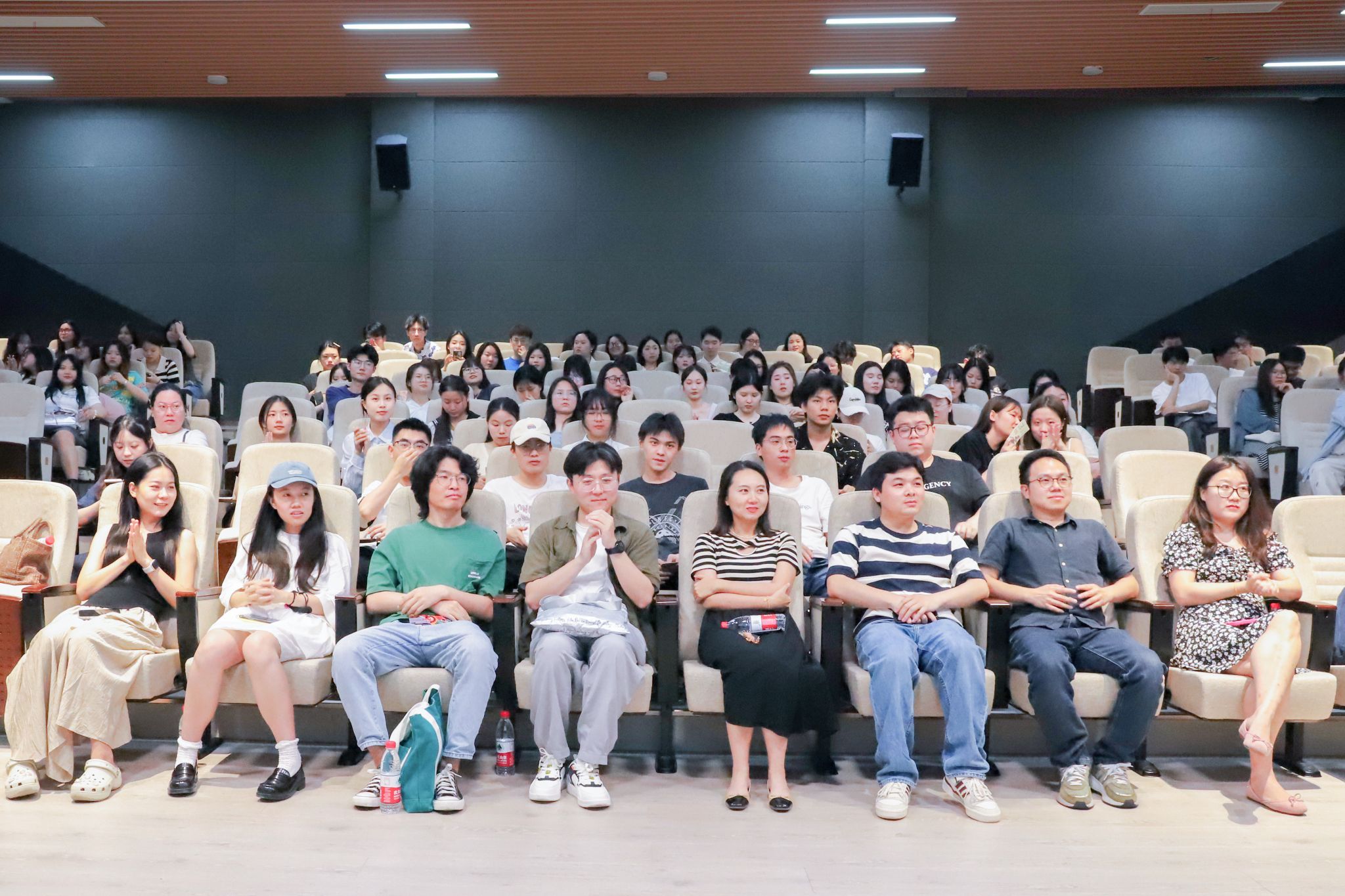 随后的座谈会环节,科幻中心的赵洋老师首先表达了深深的感动,他感慨道,《山雨欲来风满楼》不仅是一部作品,更是一次男性导演深入探索女性主义的心灵之旅。与此同时,高雨薇老师对《山止川行》这类以微观视角展现宏大主题的在地性作品给予了高度评价,并鼓励创作者们继续拍摄更多这样的作品。电影评论中心的巩一鸣老师和马中福老师针对《山雨欲来风满楼》进行了深入的剖析,并推荐了如《漫长的告白》、《婚姻的故事》以及《亲密》等影片作为参考,这些影片在女性主义表达上有着独到的见解和深刻的情感描绘,相信能够为《山雨欲来风满楼》在女性主义表达上提供更加丰富的灵感和借鉴,使其主题表达更加深刻。并且特别肯定了《山止川行》青年创作者们所展现出的探索精神,赞赏这部影片成功捕捉了藏地电影特有的神秘想象空间,并深入描绘了真实生活中的信仰谱系。来自艺术传媒学院的黄家豪老师和邹伽楠老师,以深入剖析好电影的核心概念与精湛拍摄手法为出发点,为低年级的学生们提供了宝贵的创作参考建议。他们不仅分享了对优秀电影的理解,还结合具体拍摄技巧,引导学生们如何将这些理念融入自己的作品之中。最后,潘倩云老师表达了对学生们四年间迅速成长的欣慰之情,为他们的努力和进步感到骄傲。