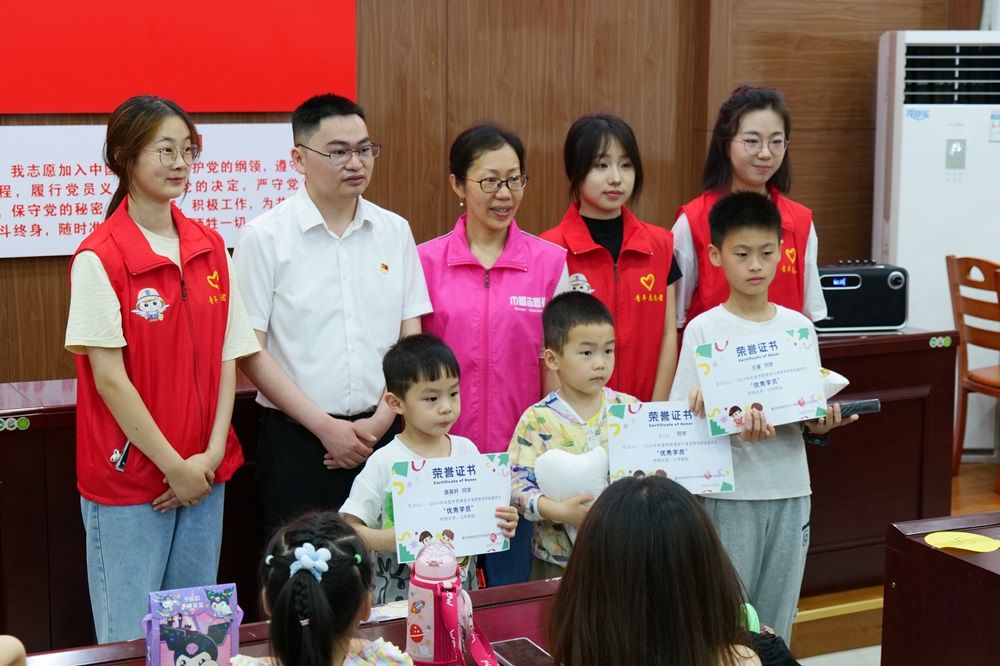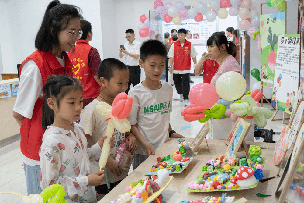 用奉献爱心践行使命,以志愿服务展现担当。在活动前期志愿者们精心筹备,分工明确,确保每一个环节都尽善尽美。从场地布置到物资准备,从节目安排到安全保障,每一个细节都凝聚着志愿者们的汗水和智慧。同时,志愿者们还准备了丰富的活动环节,包括绘画、气球、小游戏等,为活动能顺利进行提供了有力的保障。在梦想课堂结课仪式的活动现场人头攒动,一片欢声笑语,洋溢着童真与欢乐,小朋友们和家长们欢聚一堂。