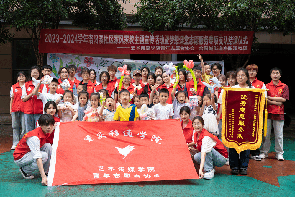 为进一步弘扬好家风好家训,营造社区幸福家庭文明新风尚,并让小朋友们回顾本学年梦想课堂的学习成果,感悟这一学年的收获,同时获得更多家长朋友们的信任,使更多的人具象化感受梦想课堂志愿服务的精神。2024年5月18日8:00,艺术传媒学院青年志愿者协会“梦想课堂”志愿服务专项服务支队全体干部、干事及指导老师怀揣着激动的心情联动合阳城街道洛阳溪社区,开展了2023-2024学年洛阳溪社区家风家教主题宣讲活动暨梦想课堂志愿服务专项支队结课仪式。