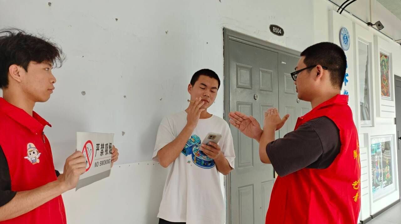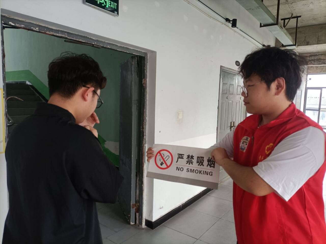 用爱唤醒希望,用心拒绝烟魔。志愿者们无私奉献,积极主动站出与吸烟者说“不”。在第八教学楼,志愿者们在天台、走廊、教室、厕所等场所巡查硝烟的痕迹,他们低声劝导吸烟人群、弯腰拾起扔在地上的烟头。志愿者们用他们的一言一行抵制着同学老师们的不良吸烟行为,用他们的一举一动展现着禁烟控烟的决心。在第八教学楼中,志愿者们的存在,让师生们有了良好的学习环境和健康的生活。