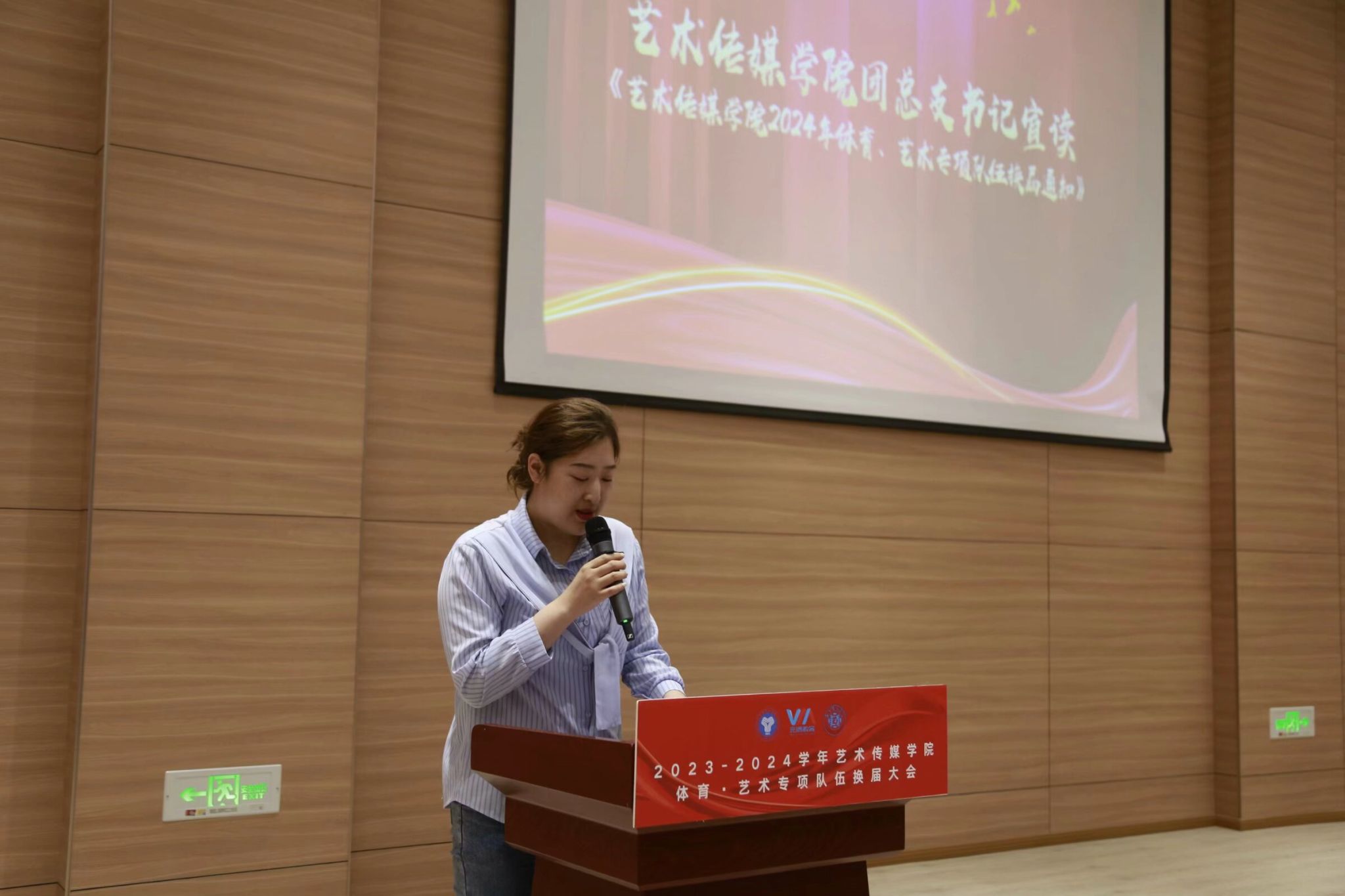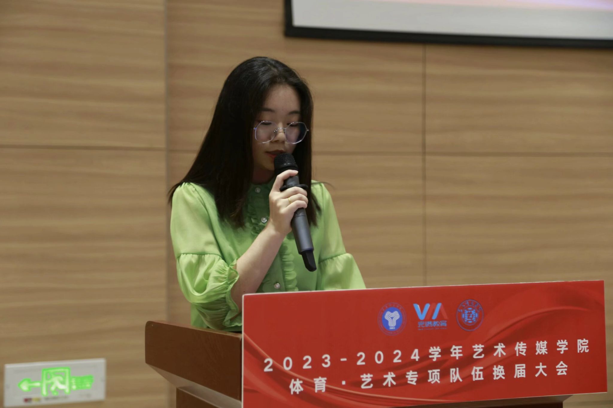 在春意盎然的四月,艺术传媒学院迎来了2023-2024学年体育·艺术专项队伍“传承与接力”换届大会。此次大会旨在回顾过去一年的辛勤付出与辉煌成就,同时展望未来,为新老队员搭建传承与交流的平台。