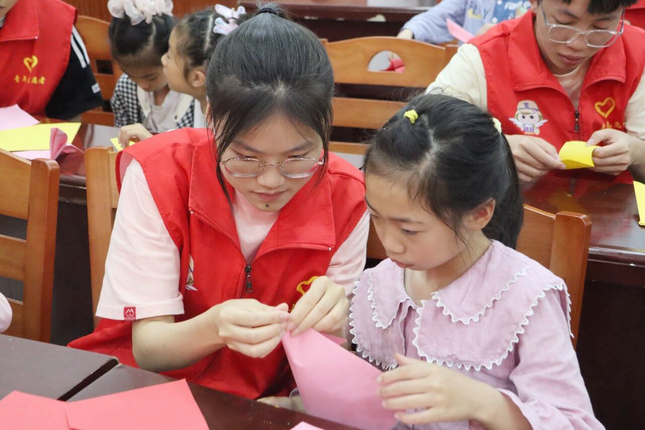 为了让小朋友们感受折纸的魅力,体会蕴含在折纸文化中的中国智慧,传承优秀文化。2024年4月13日14:00,重庆移通学院艺术传媒学院青年志愿者协会“春蕾课堂”志愿服务专项支队怀着奉献、友爱、互助、进步的志愿服务精神前往洛阳溪社区为小朋友们带来了一场与折纸的艺术之旅。