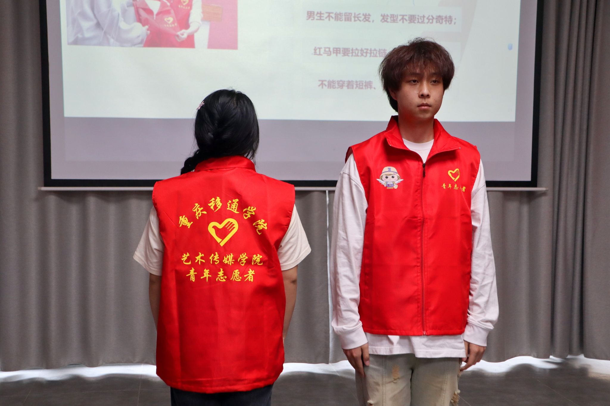 万象更新,共赴前程。培训会上,花果培训人员廖小军首先为在场人员们介绍了在新学期新增的河小清志愿服务专项支队和春蕾课堂志愿服务专项支队。新支队的成立象征着艺术传媒学院青年志愿者协会的成长。新的学期有新的气象,志愿者们迎来了崭新的志愿服装,新志愿服采用了更干净鲜丽的志愿红,且在胸口处印有艺术传媒学院青年志愿者协会专属的标志。之后,培训人员对于新服装的叠放以及爱护又进行了强调,让艺术传媒学院青年志愿者协以一个良好的样貌展现在大众面前!