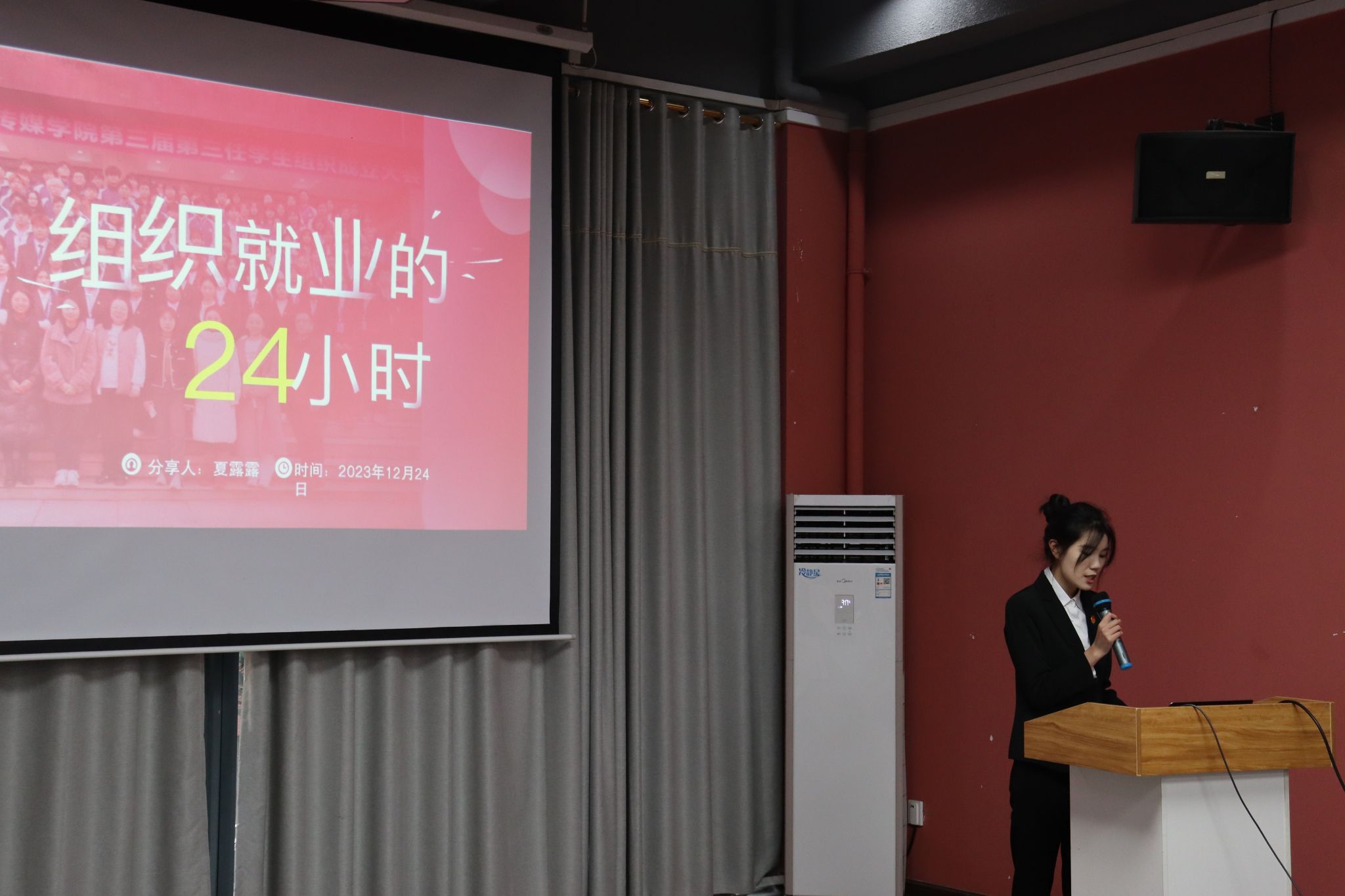 最后,艺术传媒学院团总支书记安珈璇老师对学生组织的述职提出了三个关键词:肯定、感谢、期望。首先肯定了学生组织的各位成员在学院内所做出的贡献,其次感谢各个部门的一年来的辛勤工作,最后她也衷心期望未来学院学生组织能够在同学们的努力下获得更多的成就。
