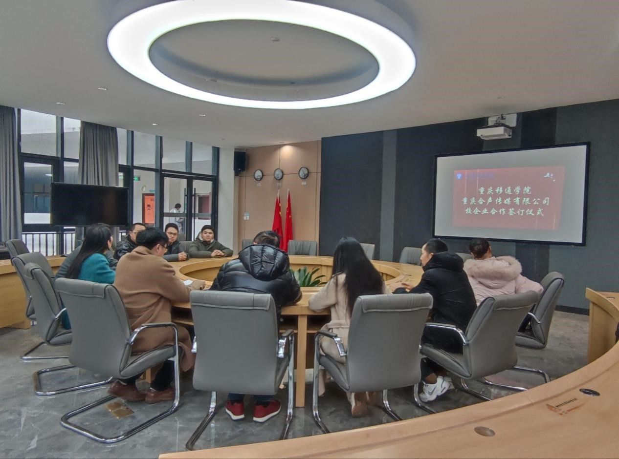 2023年11月27日,重庆移通学院与重庆市合声传媒有限公司在南湖书院圆桌会议室签订了校企合作协议。艺术传媒学院院长李轶天、就业创业工作办公室主任胡磊、教研室主任刘根良、廖国臣、曹洋洋以及重庆市合声传媒有限公司董事长屈尧、总经理李尚坤、副总经理蒲娅娜、销售主管陈静、资深摄影师肖永干出席本次会议。此次合作旨在通过深度融合教育资源与企业实践,共同培养高素质、高技能的专业人才,推动双方共同发展。