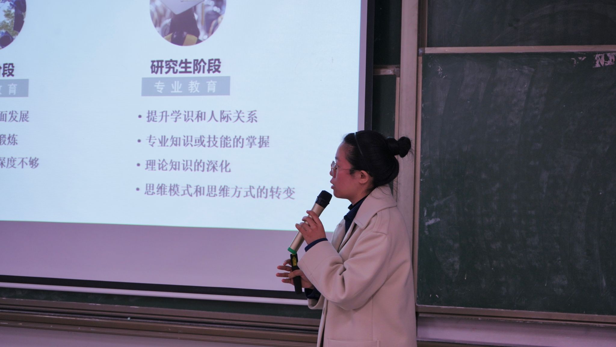 随后,李文老师分享自己考研时是如何选院校专业、复习、规划、平衡学校学习和考研,包括考上研究生之后应该做什么等,以自身为案例,从多个角度为同学们做了详细的经验分享。同时建议同学们考研需提前做好相关准备,结合自身优势才能在毕业后有更好的发展。