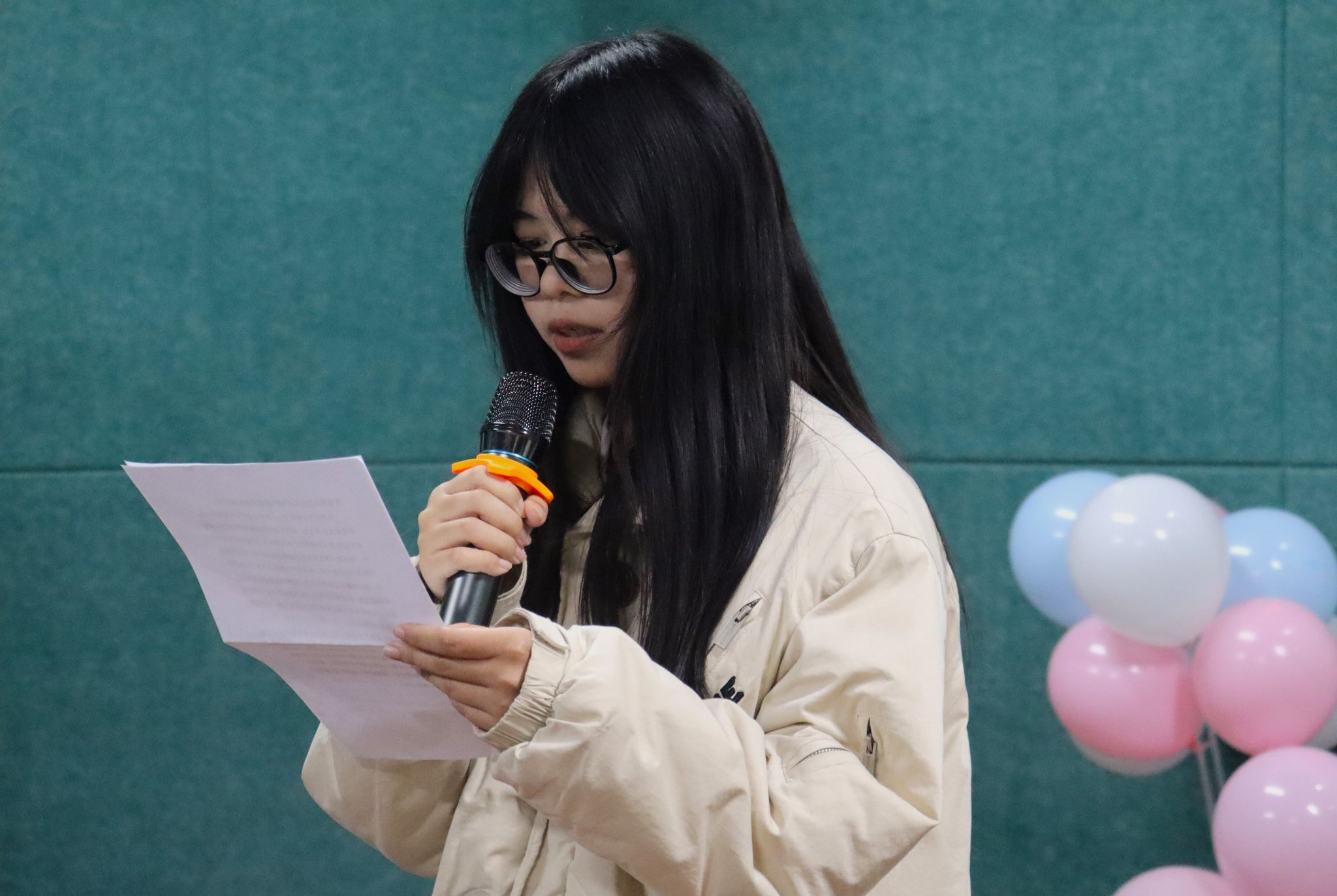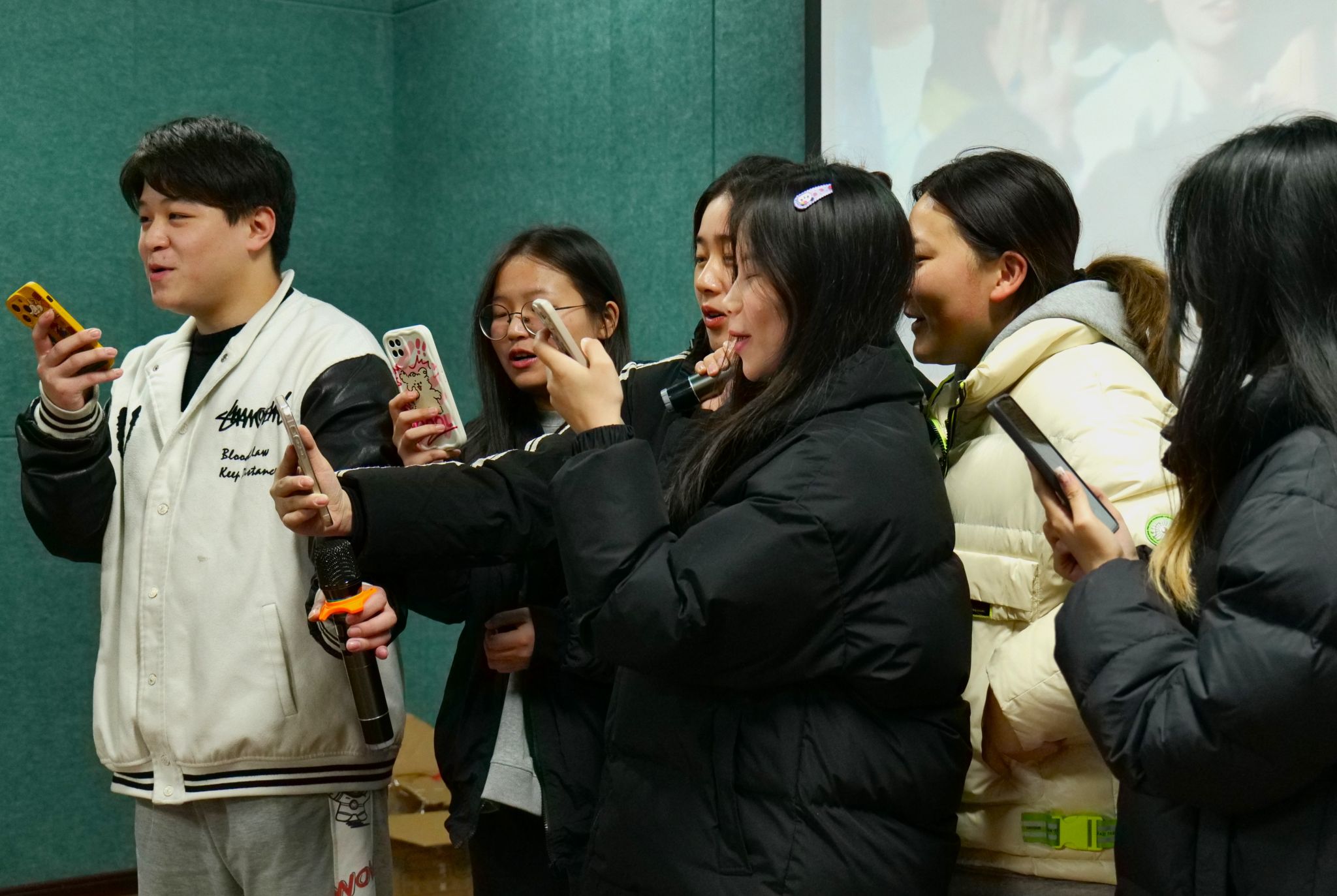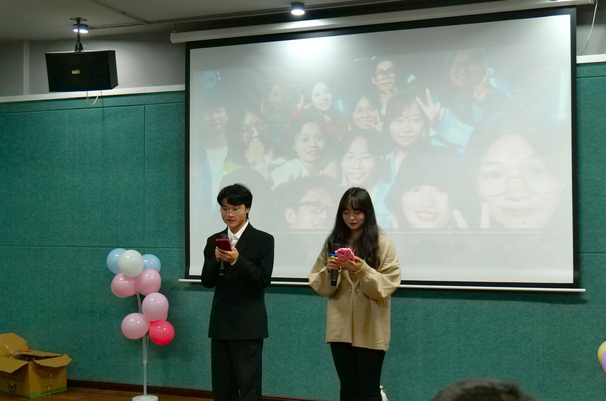 “音乐是人的良师益友”,接下来进行的是听歌识曲小游戏。听歌不仅仅是娱乐方式,更是一种表达内心情感的方式。老师与同学们一同参与,欢乐多多,现场氛围感十足。提供的歌曲更是有流行乐,民谣,老歌等各种丰富的类型,大家都踊跃说出歌名。一首歌,即是一段不同的立体记忆,一小块人生的切片。歌声已然停止,可心中的音符仍在跳动。接下来就是激动人心的抽奖环节,由邱思琪,冉川,魏瑜君,邓欢,程钰玲等七位同学和老师成为了今天的新运儿。美好的尽头在冬季静静沉淀,幸运都会接踵至。