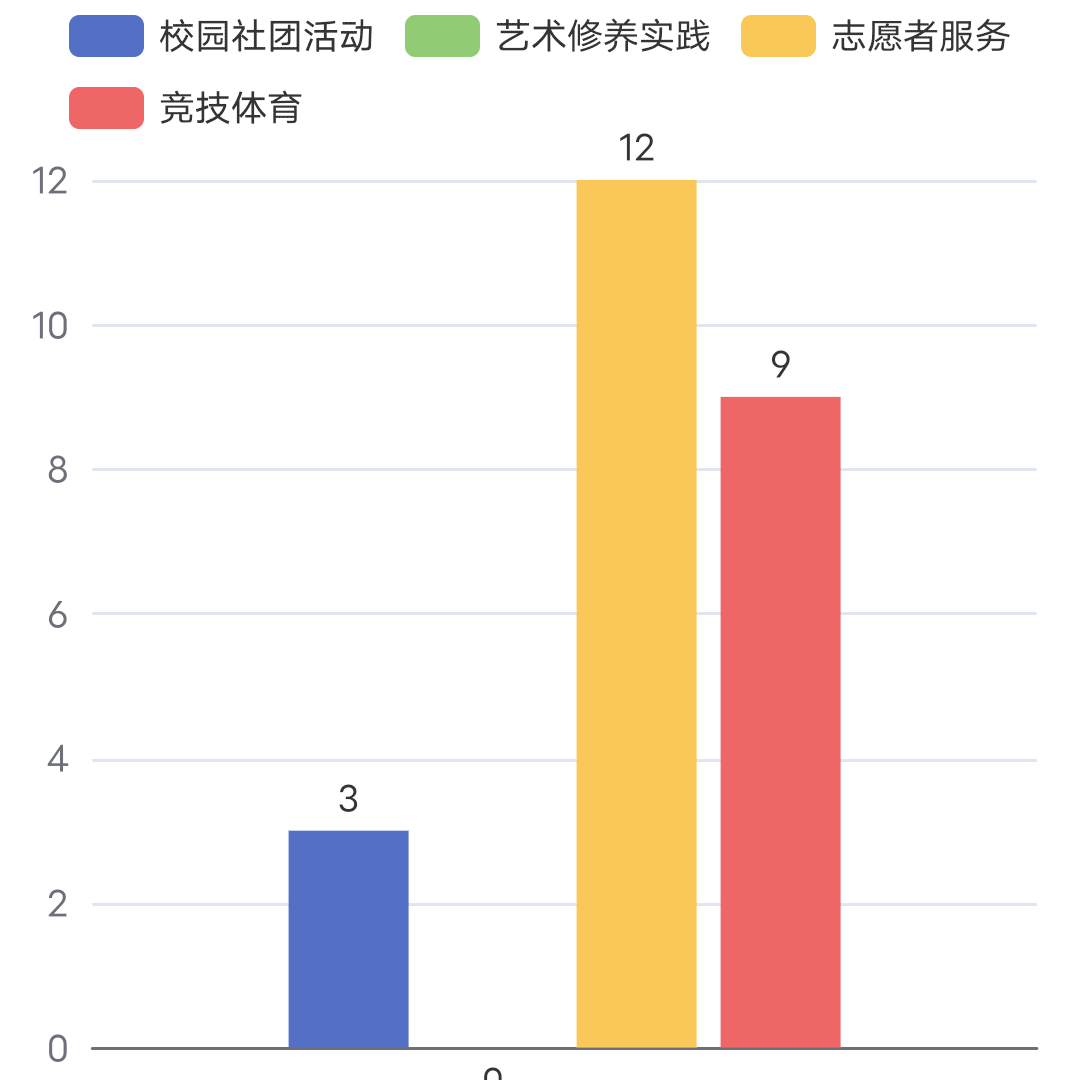 书香十一,艺术传媒学院完满小组对本院悠学派完满教育活动数据进行统计与分析。十一月份,我院共发布优学派24场,期中校园社团活动类3场,艺术修养实践类0场,志愿者服务类12场,竞技体育类9场,覆盖人数约1112人次,活动平均参与人数46人。