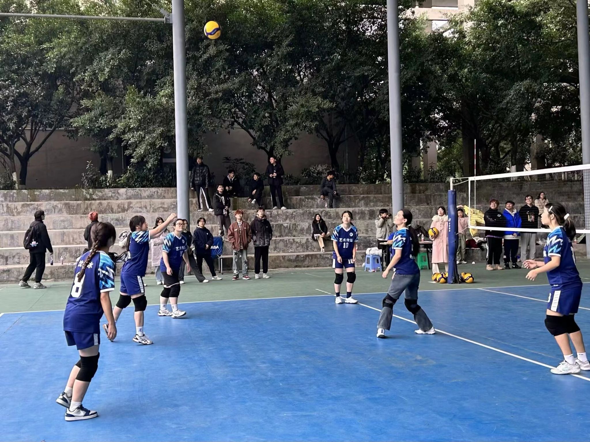 排球,一项永远保持昂扬斗志的运动。一场比赛的交锋,挥洒热血与汗水,飞身鱼跃展精神,球不落地不言弃。12月4日下午12:15,天气渐冷,但排球场上的激情在燃,2023-2024学年“三江杯”排球比赛在风雨球场顺利展开。比赛中队员们敢打敢拼,表现出色,展现了艺传学子健康向上的精神面貌。