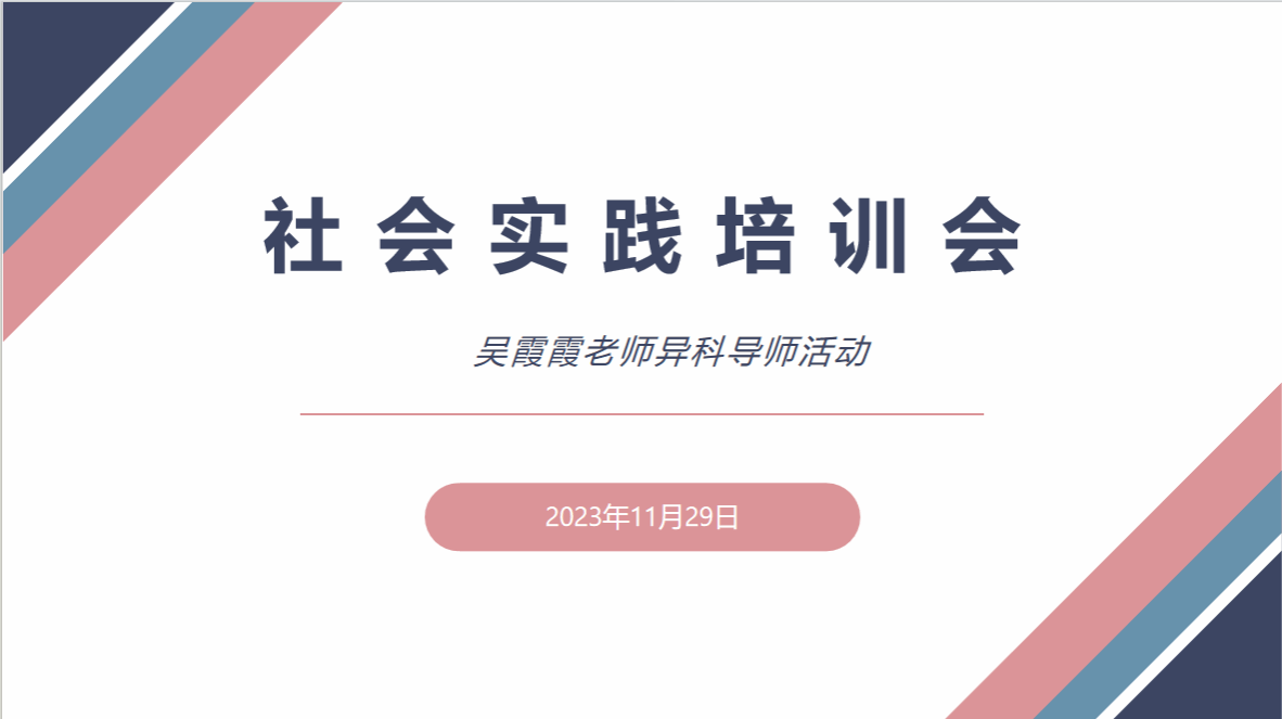 培训会上,吴霞霞老师与同学们彼此分享了近期学习与生活情况,交流了本次培训会的目的与意义,鼓励同学们积极利用寒暑期和平时课余时间开展的社会调查、专题实践、政策宣讲、文化宣传、志愿服务、卫生服务、劳动教育、岗位见习、创业实践等多种形式的社会实践活动。重点开展了新时代社会认知实践概述的内容学习,以主题解读、社会实践案例分析等多种形式帮助学生认识什么是社会实践,了解并掌握应该如何开展社会实践相关内容。