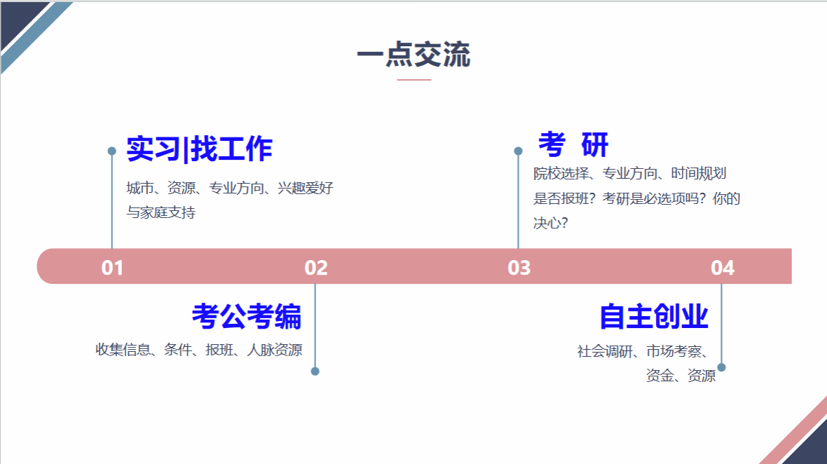培训会最后,吴老师结合同学们的实际情况,对大三的异科学生们关于即将到来的大四及毕业规划做了分享交流,在交流中,同学们有想要继续读书考研的、有的想要听从父母建议去考编,有的大四便去实习找工作,个别同学则想创立自己的工作室,有的则还在迷惘中……交流中,吴老师同学们在学习和生活方面的忧虑,以及对即将到来的大四毕业规划做出积极肯定的引导,并鼓励学生珍惜时间,过好当下的同时多做调研,多实践,以积极、乐观、客观、且努力奋进的心态规划自己的职业发展。