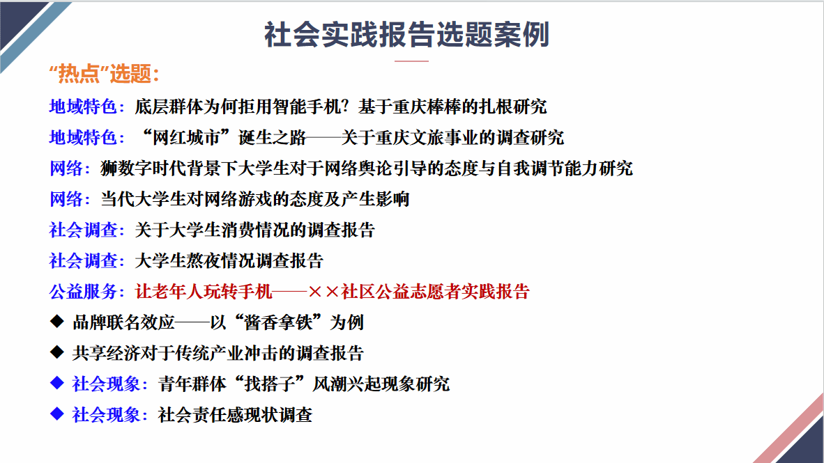 同时结合实践案例,讲授了实践概述与选题、策划与实施、方法与总结,结合时代主题,有针对性地指导学生实践选题,引导同学们多维度立体认知新时代的变化,感知新时代青年的“新”使命,增强学生社会实践的理论基底。