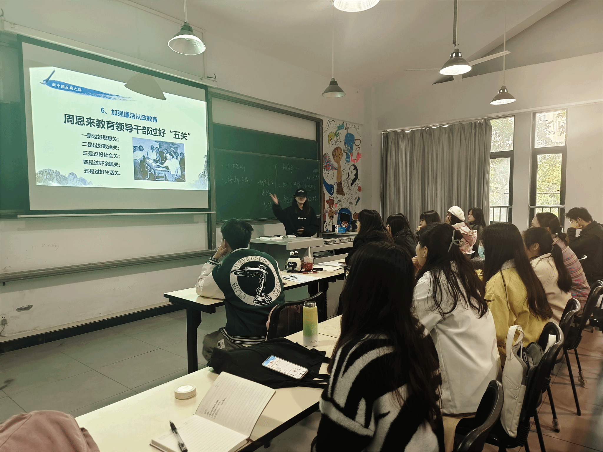 廉政是一种道德和行为规范,是对权力的约束和自我约束。通过对《中国党廉洁自律准则》和《中国党纪律处分条例》的学习,让同学们更加明确了在党内的行为规范和党纪处分的相关规定。了解新中国反腐之路,看到党一直以来在廉政建设方面的坚定决心和取得的显著成就,为同学们提供了学习的榜样。