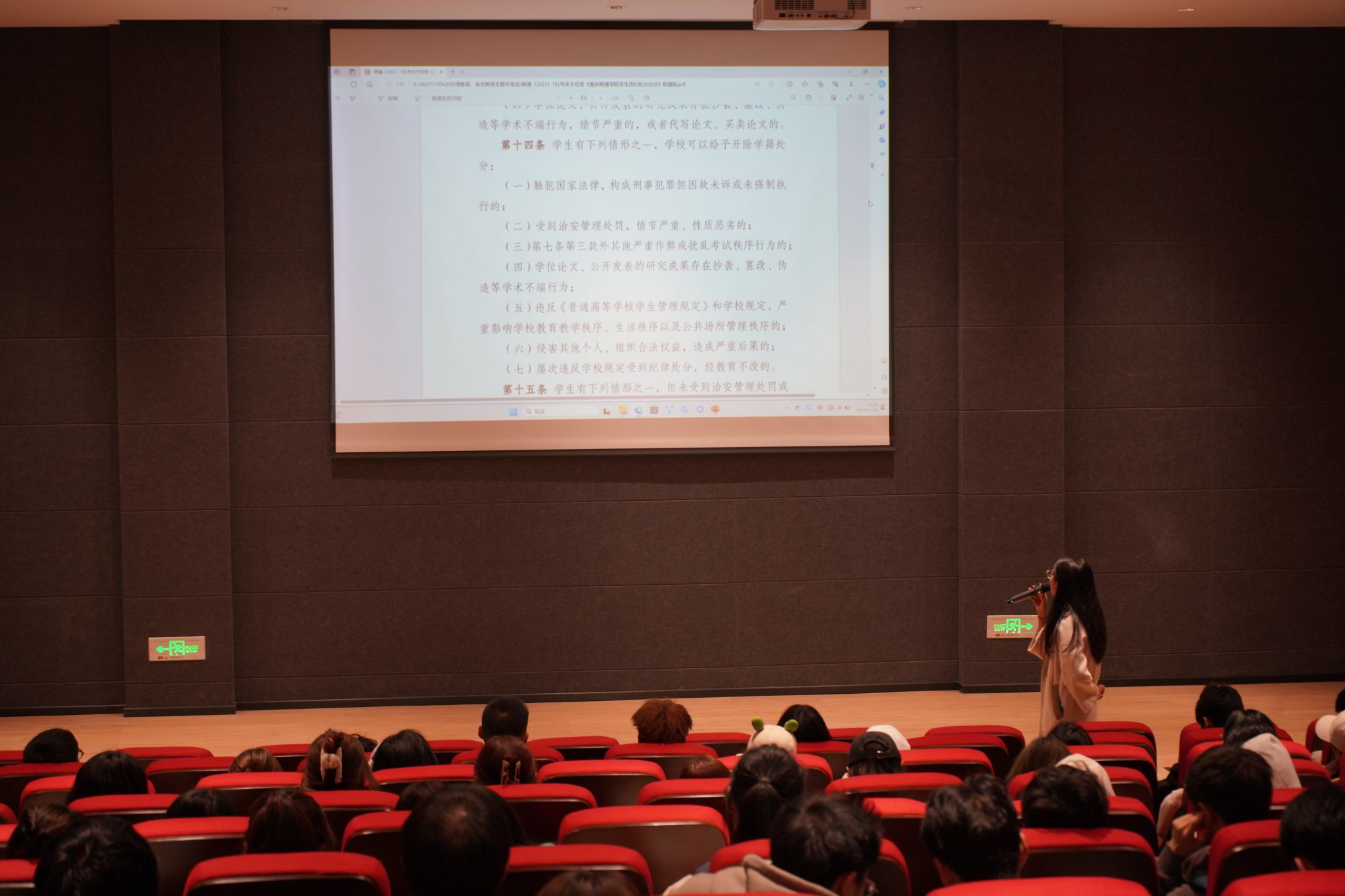 2021级动画专业辅导员孙楝老师以案例研讨的形式,详细讲解违反校规校纪的几种类型,并通报了近期校园内发生的典型违纪行为。2021级数字媒体艺术专业辅导员毛国婷老师从学风建设的角度,重点强调了无故不参加学校教育、教学计划规定的活动或擅自离校的处理办法。提醒同学们不得无故缺勤,更不能通过代课的方式扰乱课堂纪律。2021级广播电视编导专业辅导员姜璐老师向同学们讲解了学术造假案例,明确了学位论文、公开发表和研究成果不得抄袭、篡改、伪造等学术不端行为的后果,加强了学术诚信教育。
