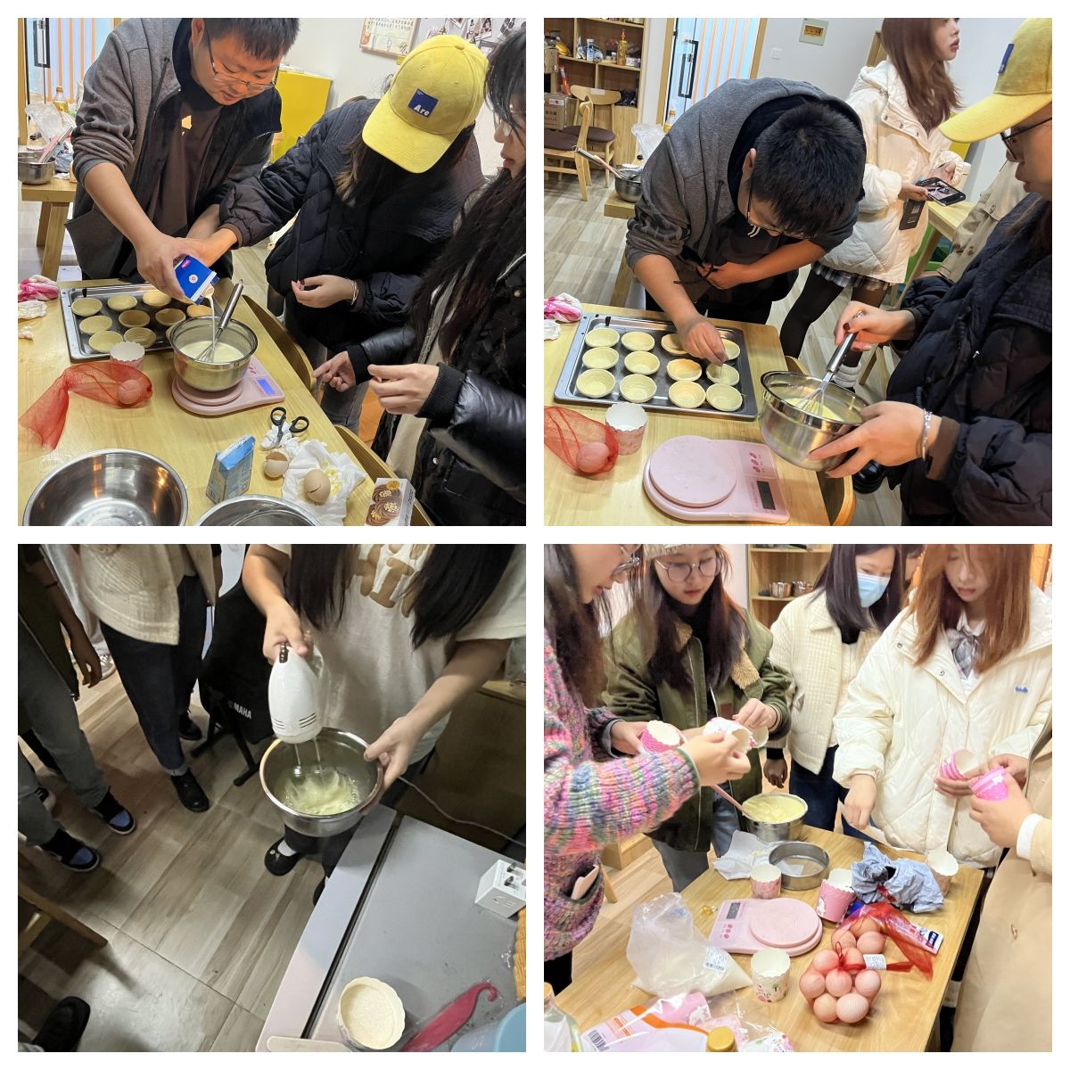 为丰富同学们的课余生活,缓解学习压力,艺术传媒学院全生异科导师文豪老师于2023年11月22日下午,邀请艺术传媒学院异科导师胡红琼,淬炼商学院异科导师陈锐、谭春莉,在廊桥书院千禾烘焙工坊联合举办了一次烘焙主题活动。参加活动的同学有艺术传媒学院广播电视编导专业及网络与新媒体专业的胡缘、秦羽、沈彬冰、越鑫、池玙婕等。