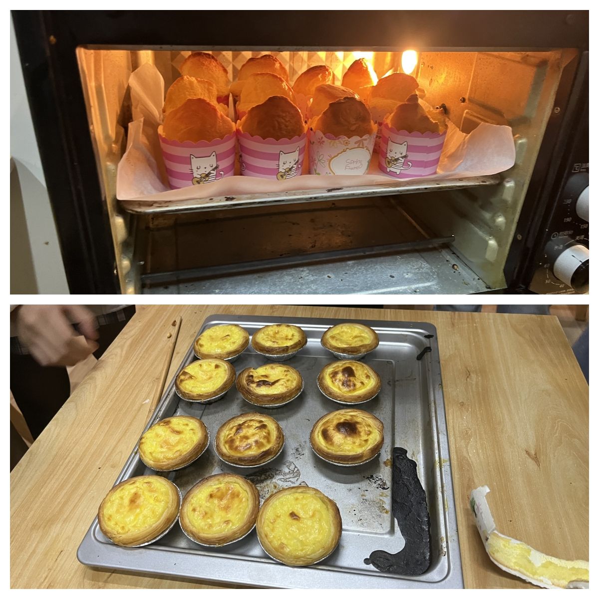 很快,在同学们的通力合作下,纸杯蛋糕跟蛋挞被送入烤箱。经过一段时间的烘烤,成品新鲜出炉。每位同学都满怀期待地品尝了自己参与烘焙的蛋糕,每一个出炉的蛋糕都彰显着同学们出色的动手能力。在活动的最后,同学们将没吃完的蛋糕装入收藏袋,准备带回班里跟其他同学分享。