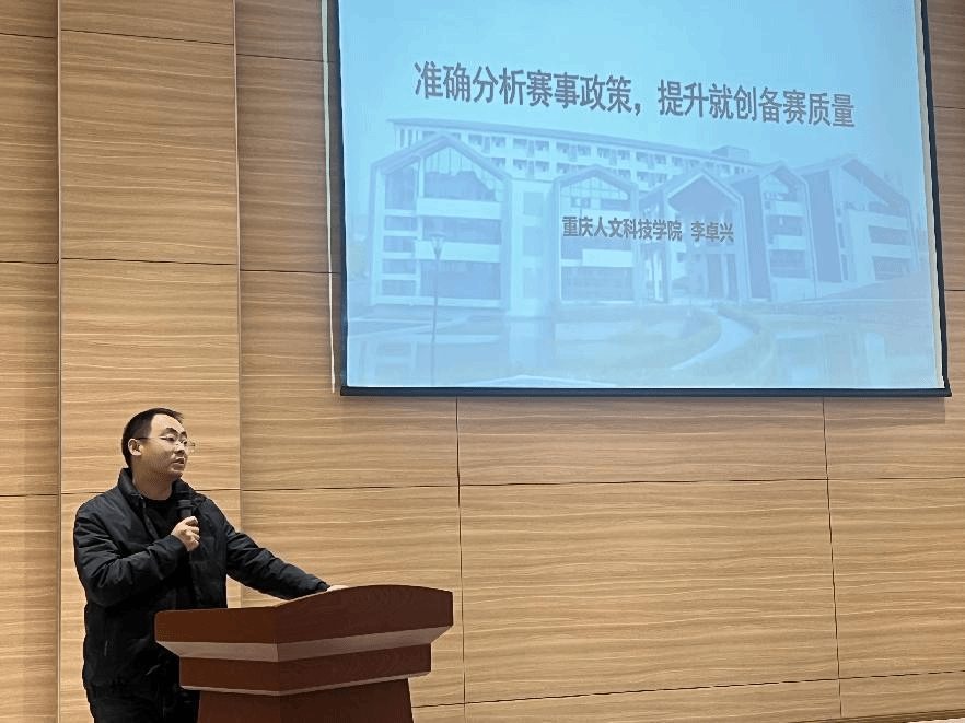首先,李老师对赛事相关的政策文件进行解读,分析了当前的就业创业形势,并对高校就业创业类赛事历年来的开展情况做了分享。帮助同学们更好的把握赛事规则,把握赛事侧重点和方向,从而能更精准的选择项目,在众多参赛选手中脱颖而出。