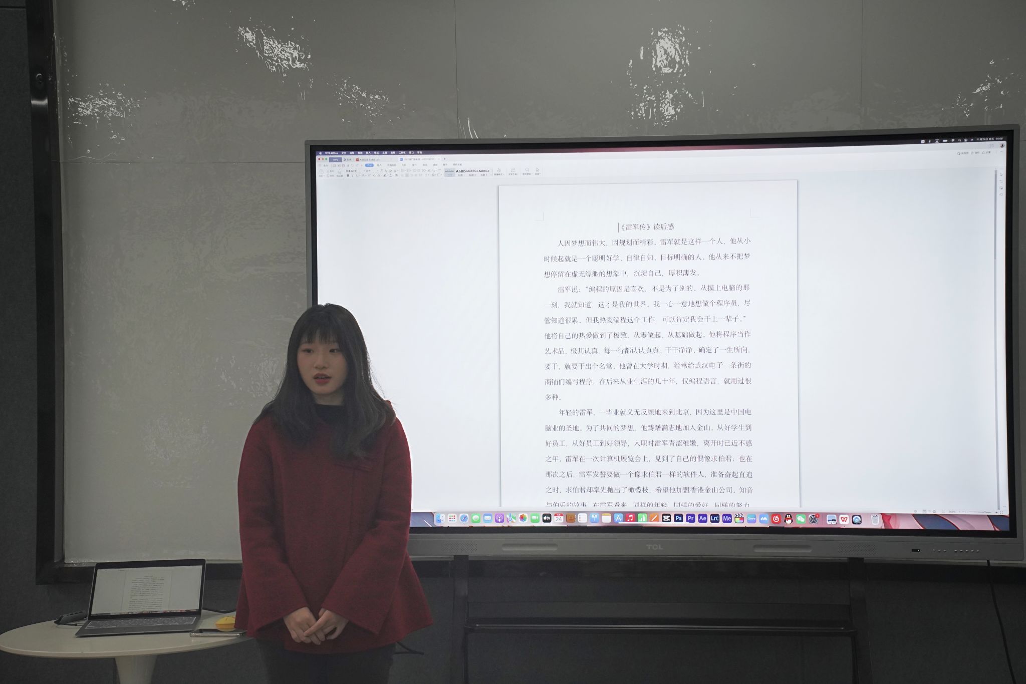 阅读大咖书籍会带给同学们知识和眼界的提升,同时也在潜移默化中培养了同学们的思考能力和分析能力。阅读并不仅仅是眼睛看到文字,大脑理解意思的过程。有效的阅读方法可以帮助我们更好地理解和记忆信息,提高我们的学习效率和工作效率。2022级邱思琪同学带来《雷军传记》为例,为同学们分享阅读方法以及大咖书评的书写格式,精细阅读是一种非常有效的阅读方法。作家马克·吐温说:“真正的阅读不仅仅是用眼睛看文字,更是用心去感受。”我们要将书读进读深,如同嚼甘蔗一样反复,揣摩。将自己带入文本,设身处地的去主人公位置上思考,通晓他的智慧,打开新的角度去看待问题。
