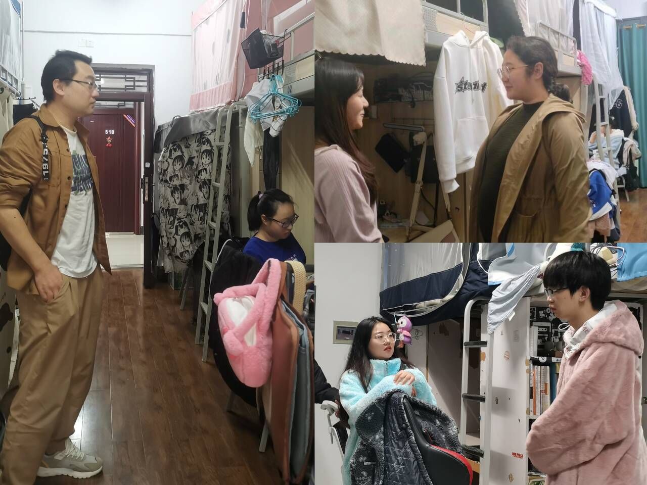 此外,秋冬季节断崖式降温,辅导员老师也送上暖心问候。提醒同学们注意室内卫生,保持室内通风,留意气温变化,随时增减衣物,预防流感病毒。同时,在交通出行安全方面,提醒同学们校园内禁止驾驶摩托车、电动车,校园外也不鼓励同学们驾驶,以免发生交通安全事故。辅导员老师们从各方面关心学生,让寝室走访工作不流于形式。