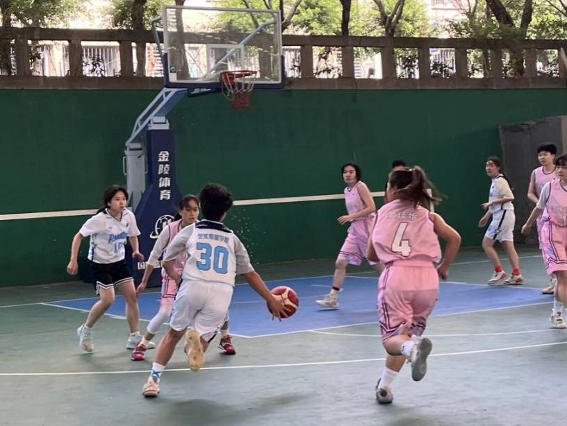 比赛开始,我方队员凭借矫健身姿和战术遥遥领先。随着比赛的有序进行,队员们开始调整战术,全力打好配合,快攻猛打。女篮这边也是步步紧逼,双方抢拼激烈。