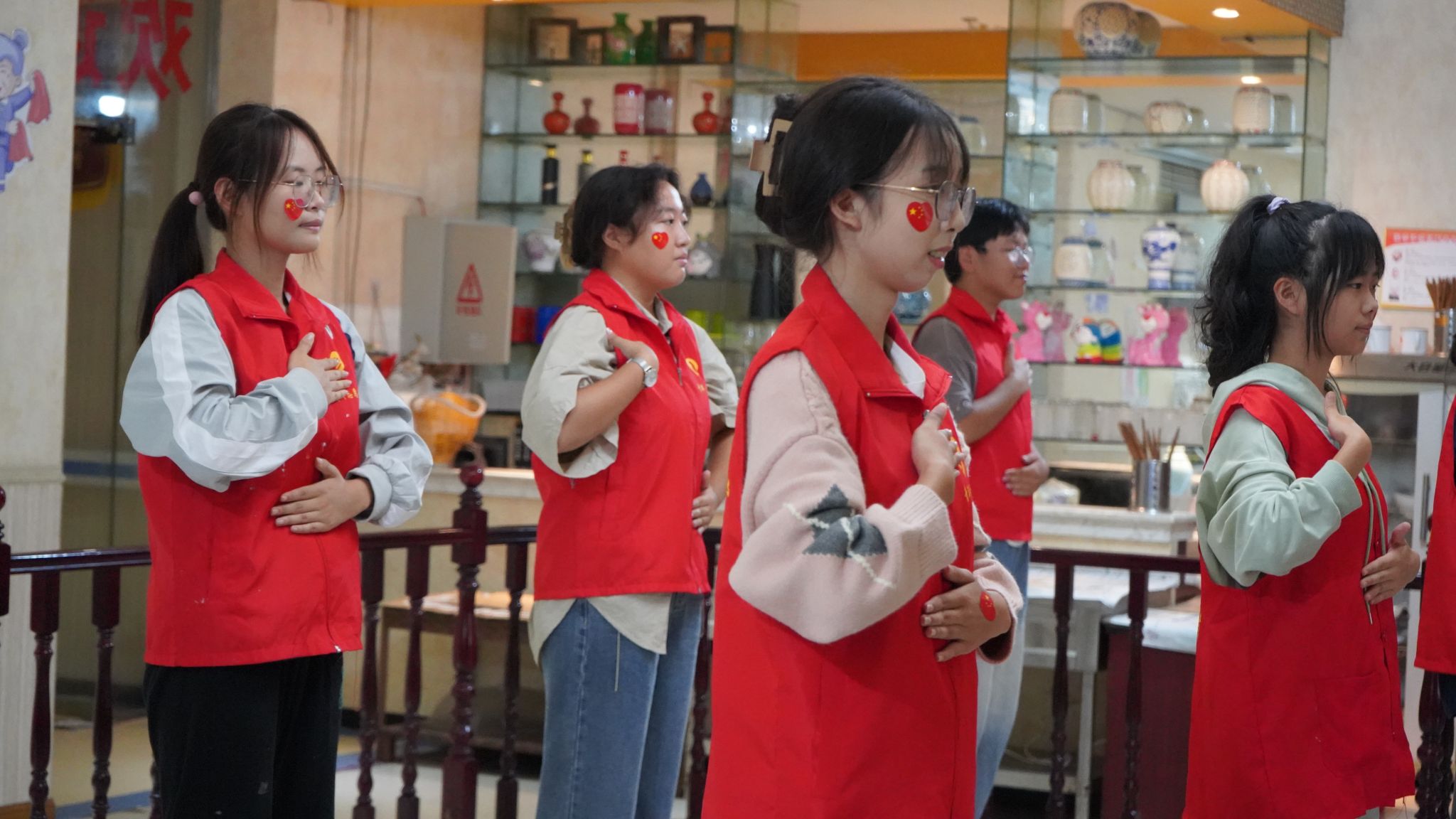 代替沉默的是欢声笑语,志愿者以自己独特的方式爱着祖国
