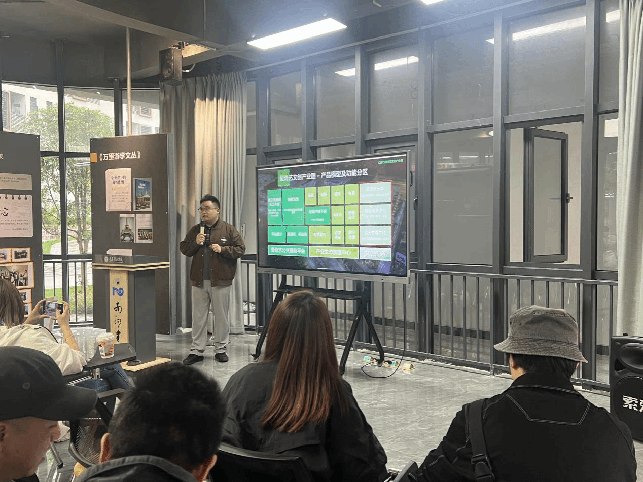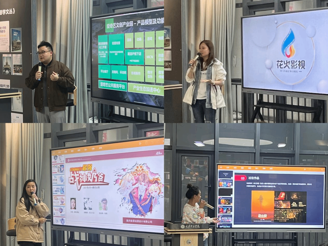 “同学们对自己的未来是否拥有一个明确的目标?”,活动伊始,爱奇艺产业园的牵头领导对在座的各位同学抛出了一个问题,引发同学们的思考,接着,通过展示PPT详细介绍了爱奇艺产业园的园区环境和园区情况。他向同学们展示了爱奇艺产业园的工作分布区间以及现目前在职人数,以及将薪资待遇向同学们作了解释。随后,为了让有应聘意向的同学们更好的了解他们的产业园,爱奇艺产业园的领导让同学们关注相关公众号以便于咨询。紧接着,产业园的花火影视领导人继续向同学们讲解。
