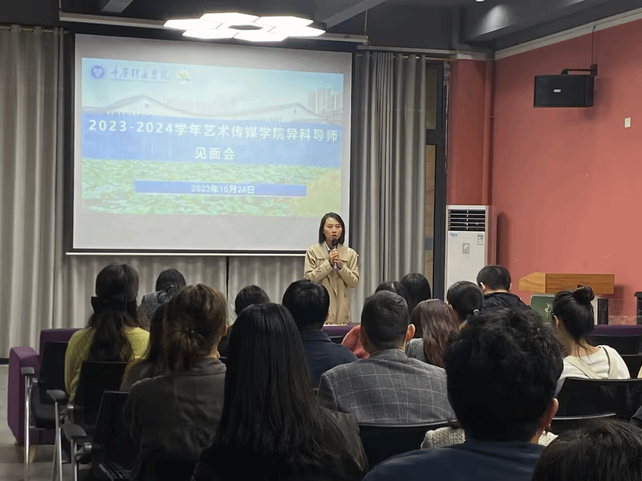 会议伊始,艺术传媒学院郭菲院长发表讲话。她强调了导师交流的重要性,指出导师是学生在学术道路上的引导者和指导者,导师与导师、学生之间的密切合作对学生的成长具有重要意义,并呼吁导师们要以身作则,积极参与学生的学习与研究,为学生提供有力的指导与支持。