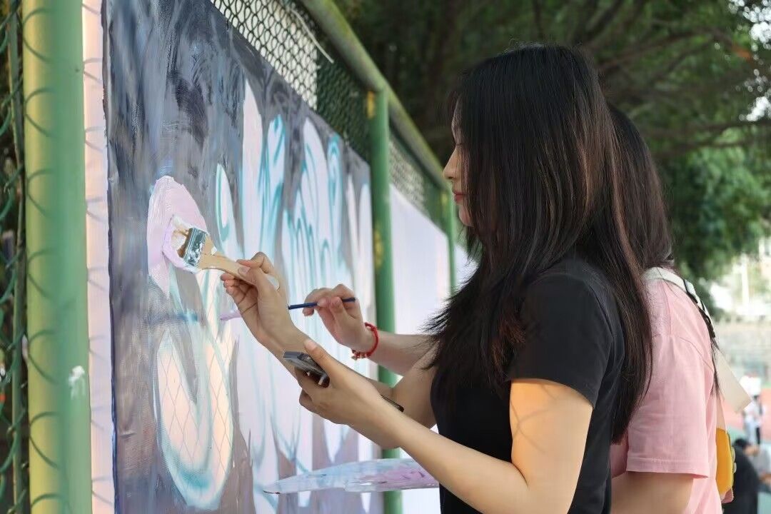 2023年“大学城•钓鱼城”音乐节大型涂鸦活动已经开始啦!校园音乐节即将到来之际,艺术传媒学院团总支美宣部以“拥抱音乐,和蕉绿say goodbye”为主题开展2023年音乐节外围涂鸦活动。活动开始之初,同学们都热情饱满积极参与,很快便召集好各自的组队,于10月16日下午在南校区足球场展开本次涂鸦活动。
