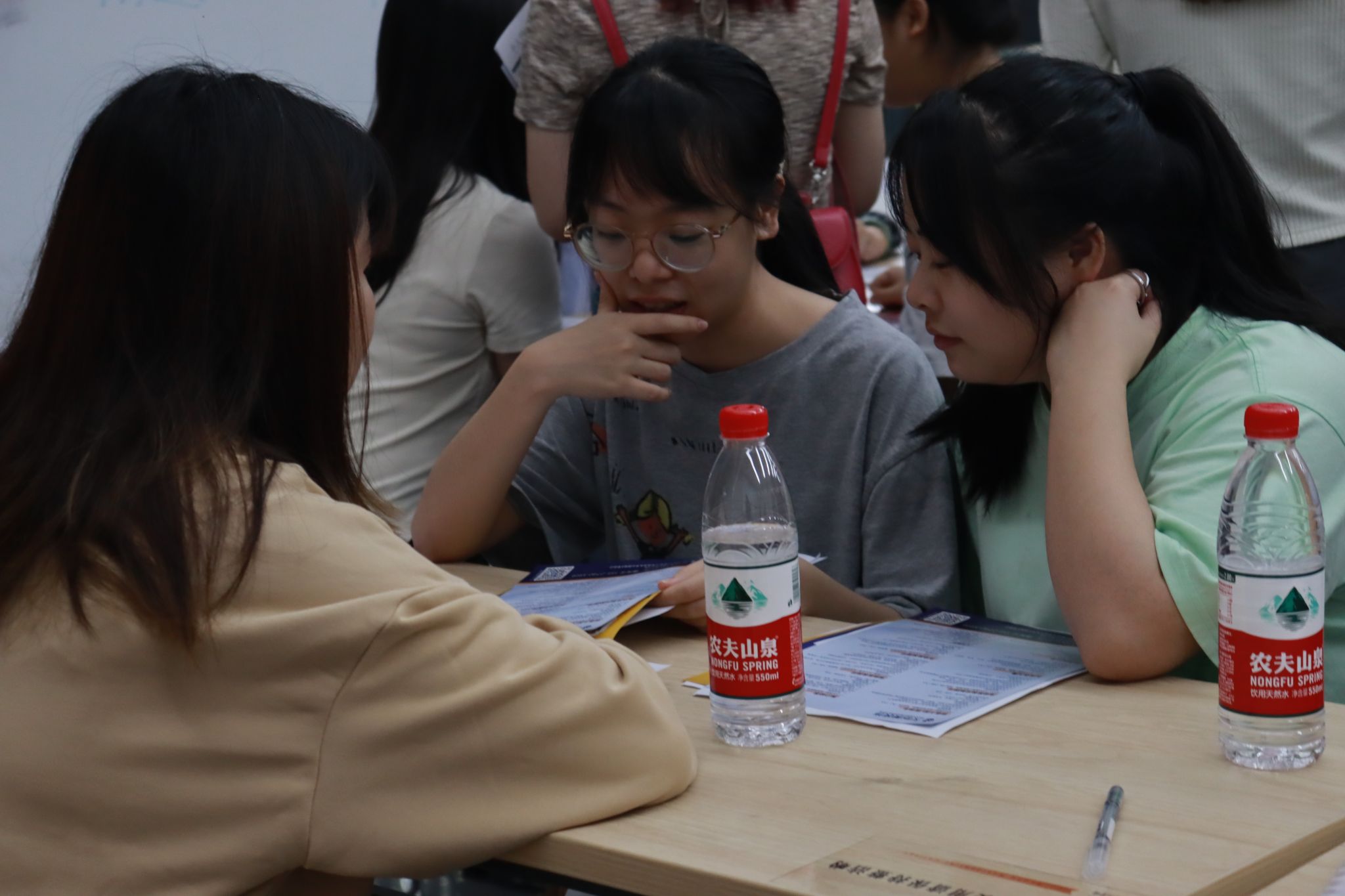 不容忽略的是,现场的志愿者们用心打造良好秩序,耐心热情地为企业及同学们解答疑惑,构建起企业单位与求职同学间的桥梁,充分发挥服务精神,为活动现场增添了一抹志愿红。为了打造更好的求职体验,此次还安排了指导老师积极引导学生做好简历撰写工作,迎合企业审美,树立自我风格,大大提高了企业与同学们的交流效率。