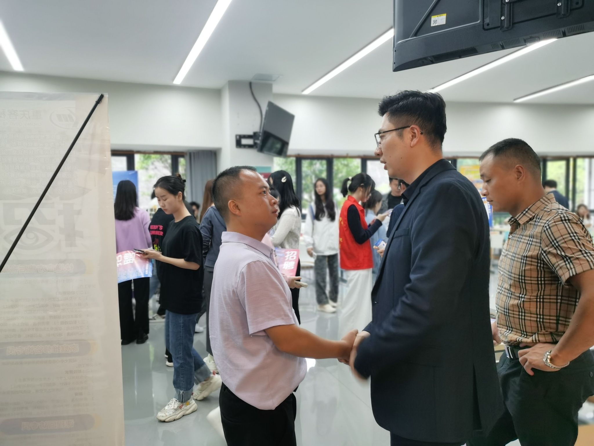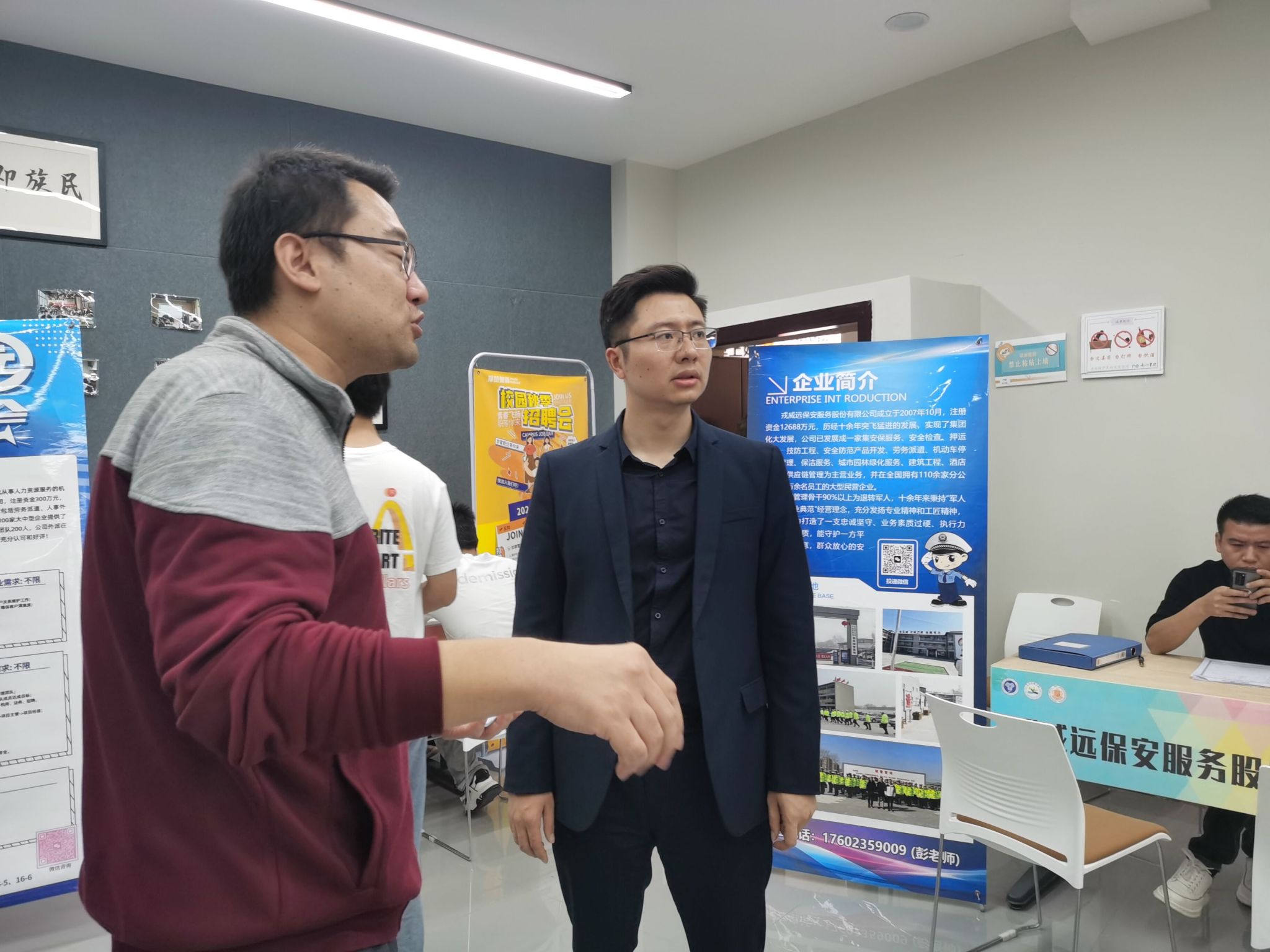 在双选会现场,求职招聘进行的如火如荼。毕业生与用人单位做到一对一交流,深刻探讨就业趋向以及未来发展方向。就创办佘桂隆主任也来到现场探访询问,增强企业与学生沟通,实时对接就业状况,增添了同学们的信心。