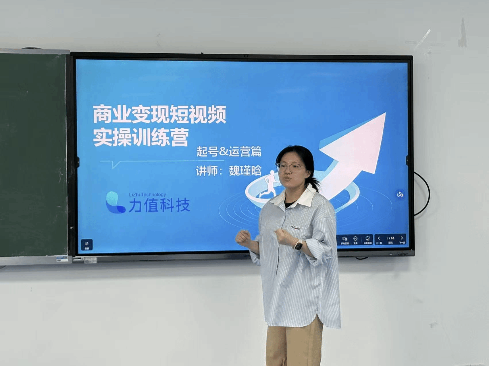 宣讲会由力值科技资深讲师魏璟晗、周影共同主讲,内容充实且环节紧凑。两位讲师围绕账号运营进行了系统解析,帮助同学们厘清了短视频创作的内容方向。