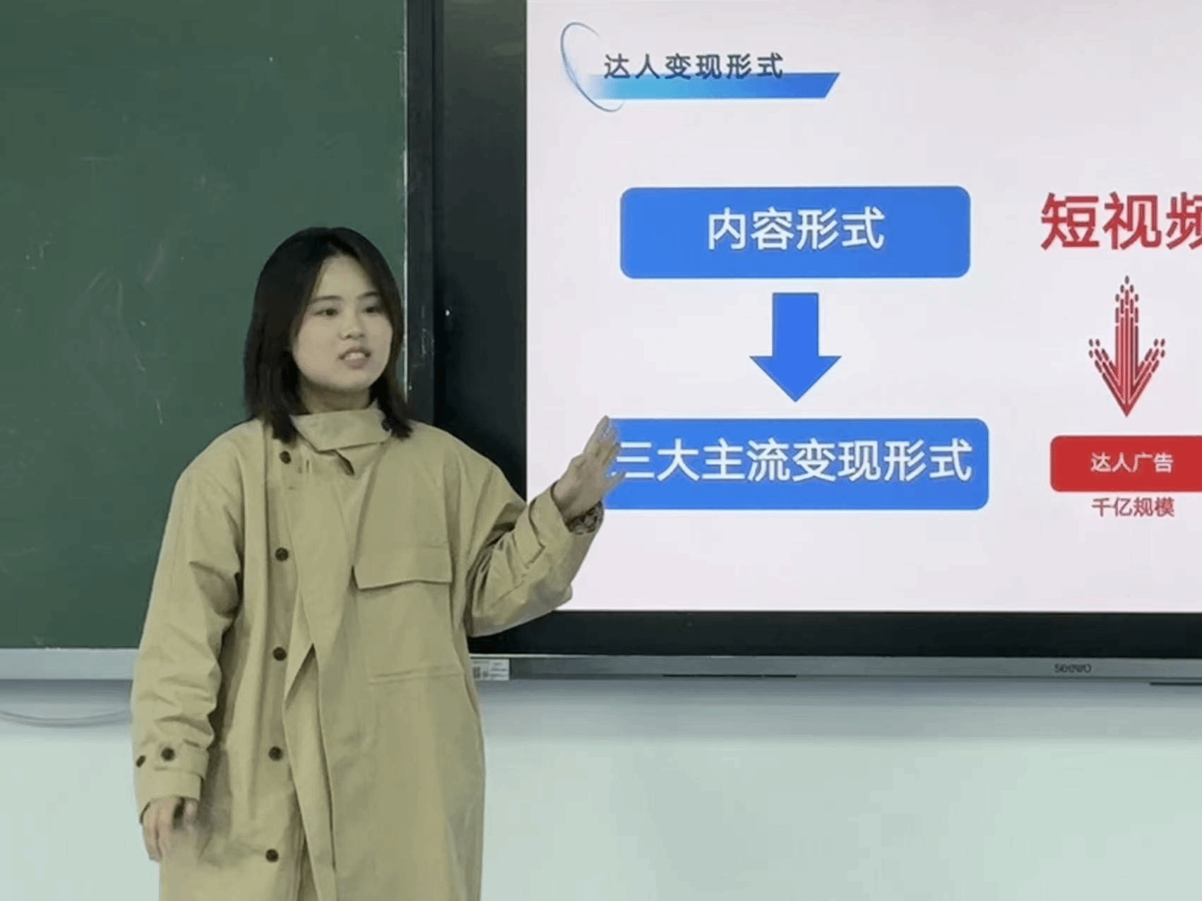 随后,周影老师将焦点转向短视频生态中的关键环节——变现。揭秘达人变现模式,直击行业痛点她系统介绍了当前主流的内容达人变现形式,并对常见的广告合作模式进行了深入分析。周老师结合自身经验,精准指出了内容达人在成长过程中普遍存在的需求与痛点,并通过展示不同素材效果的对比,直观地强调了优质内容素材的重要性,总结了爆款素材所需具备的核心要求,为同学们指明了内容优化的具体方向,课堂互动积极,学习氛围浓厚。